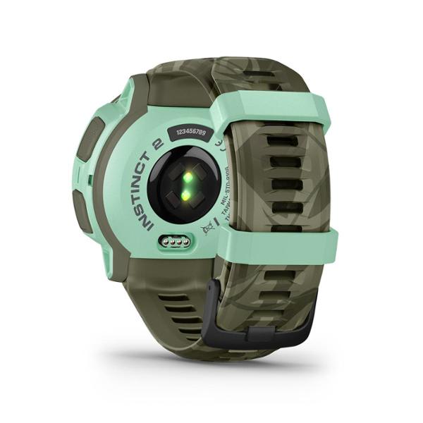 Đồng hồ được thiết kế bởi vật liệu Polymer cốt sợi với mặt kích cường lực (mặt kích Power Class cho phiên bản solar). Mặt sau của instinct 2 Solar là 1 sự thay đổi lớn về cảm biến khi nó được trang bị chip cảm biến đo nhịp tim thế hệ thứ 4 của Garmin đây là 1 trong những chip cảm biến tốt nhất trên thế giới hiện nay. Một điểm thay đổi nữa trên instinct 2 so với phiên bản tiền nhiệm là sự thay đổi về vị trí cảu cảm biến khí áp kế và đo độ cao so với mặt nước biển giúp mang lại cho người dùng những thông số chính xác hơn.