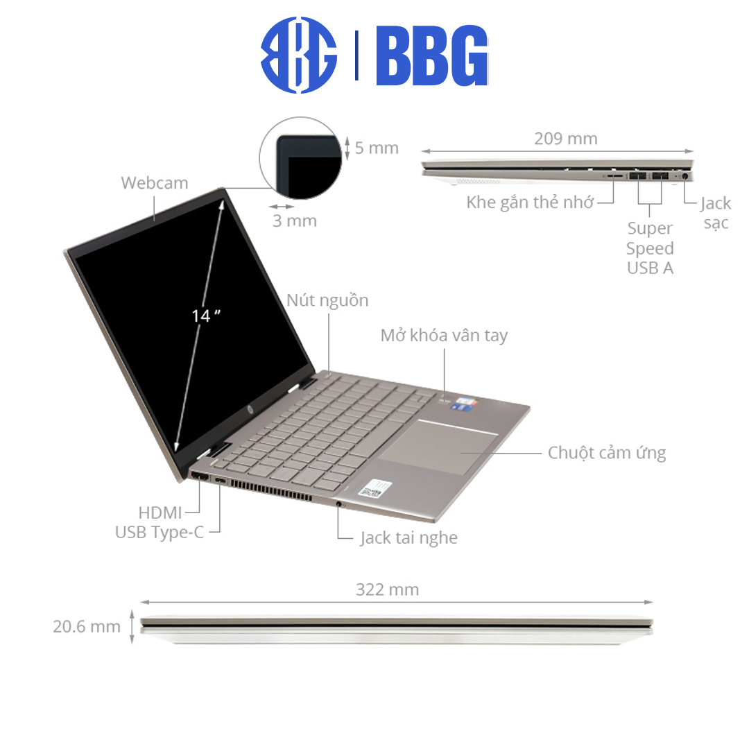 Ngay từ cái nhìn đầu tiên, nhiều khách hàng đã ấn tượng với thiết kế cực kì gọn nhẹ của Laptop HP Pavilion x360 14-dy0075TU 46L93PA. Một chiếc máy 14 inch nhưng có kích thước ba chiều chỉ 32.2 x 20.90 x 2.06 cm và khối lượng vỏn vẹn 1.5 kg, nên bạn có thể dễ dàng mang theo em nó đến bất kì đâu.